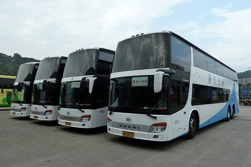 根據(jù)杭州線客流穩(wěn)中有升,尤其是周末及節(jié)假日運(yùn)力不足的情況,8月3日,快客分公司新購(gòu)置的4輛55座安凱客車(chē)上線營(yíng)運(yùn)。新購(gòu)置的55座安凱豪華客車(chē)為雙層豪華大巴,上層40座,下層15座。下層配備3臺(tái)15寸液晶,上層配1臺(tái)17寸彩色液晶,該車(chē)的倒車(chē)監(jiān)視器還帶多動(dòng)畫(huà)面,能手動(dòng)切畫(huà),監(jiān)視上下層車(chē)內(nèi)情況,配備電子巡航系統(tǒng)等。車(chē)身13.7米,比原杭州線所用的37座安凱客車(chē)車(chē)身長(zhǎng)1.7米。