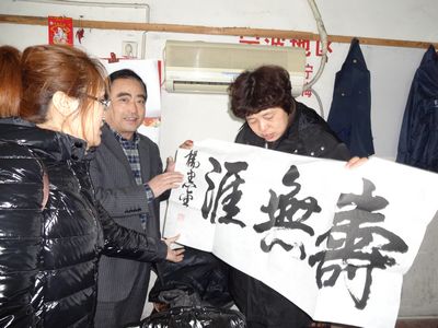 終于,神色焦急的楊先生進入了宣主任的視線,她主動上前詢問。一聽到有人撿到包,楊先生心情很激動,趕緊跟著宣主任到行包受理室查問。最后經(jīng)過核對確認,小田撿到的包正是他丟失的;經(jīng)清點,包內(nèi)物品一件不少。楊先生說,他是代表山東泰山文化藝術(shù)研究院來麗水聯(lián)系中國藝術(shù)文化交流的;筆記本電腦里全是文化交流的資料,對他來說非常重要,他非常感動,非要重重酬謝小田和宣主任不可。當楊先生聽到宣主任說,東站的工作人員拾物都會上交歸還時,就對東站的領導給予員工的教育培養(yǎng)深表欽佩。為表示感謝,楊先生堅持要贈送給小田一幅他的墨寶“壽無涯”,喻示著好人一生平安,好人長壽無疆。