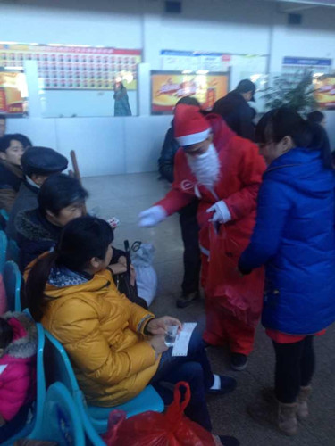 冬日的寒風(fēng)卻吹不走候車室里的溫暖,2013年的圣誕節(jié)期間,正當(dāng)旅客們在等候班車的時候,客運東站的三名“圣誕老人”現(xiàn)身候車室,在給旅客們送上一盒盒牛奶,旅客們感覺直呼驚喜。